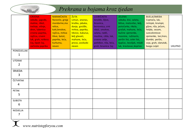 Provjerite raznolikost svoje prehrane! Prehrana u bojama duge, prati fitonutrijente prisutne u hrani na biljnoj bazi. U različito doba godine, bit će različiti i rezultati, poticaj na sezonsku hranu u što većem rasponu, a i ostalu prema preferencijama!